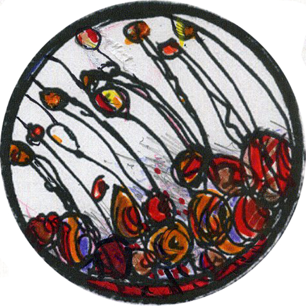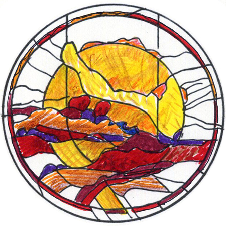 The clients and I chose a few of the most promising designs and I added some color. The color sketches help us visualize the final window and distinguish the shapes and forms. Later, the final colors are chosen with glass samples. These are three of the designs we created.