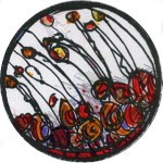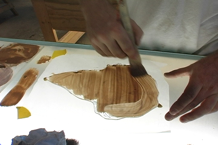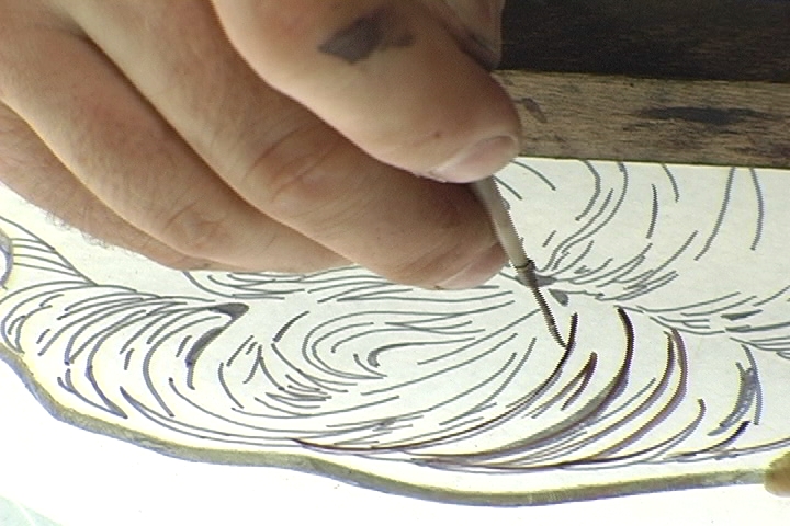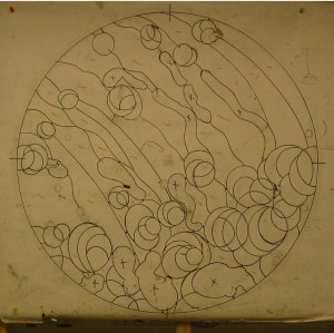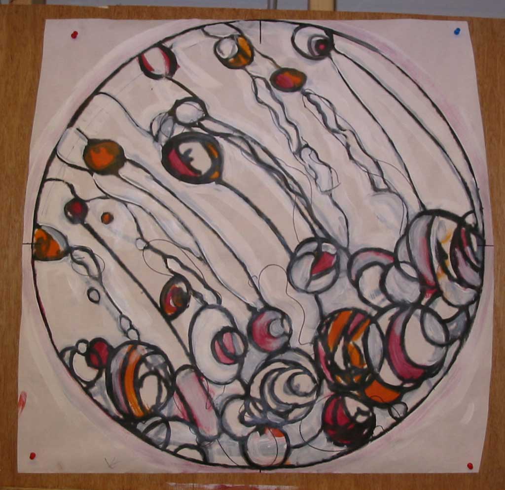 In this pattern, I paint in lead-lines and start placing colors for use when cutting glass.
